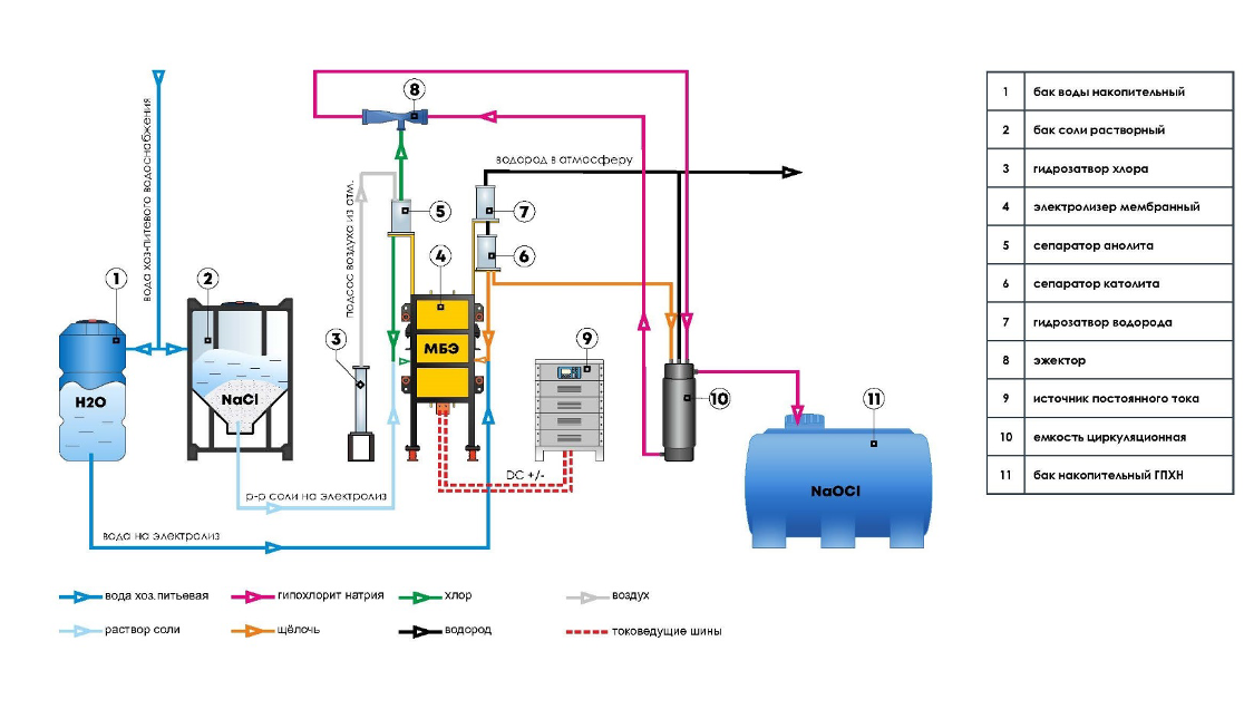 Электролизная установка гипохлорита состоит из нескольких ключевых компонентов: